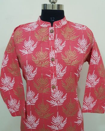 Opulent Cotton Printed Baby pink Coloured Kurti