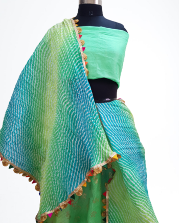Unique Aqua Coloured Semi-Stitched Kota Lehenga with Crushed Dupatta