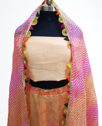 Classy Unstitched Peach Coloured Gotta work Ghaghra with Unstitched Kurti