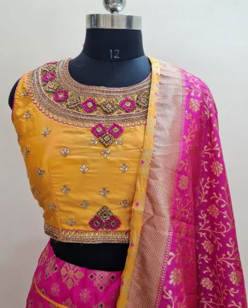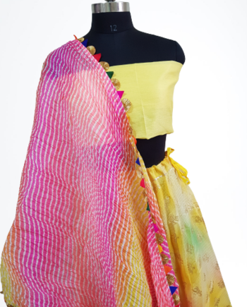 Classy Yellow-Pink Stitched Lehenga Choli Paired with weaved Dupatta