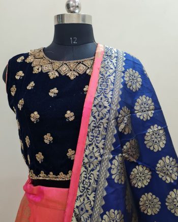 Mesmerising Navy Blue-Peach Coloured Stitched Heavy Ghaghra Choli