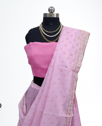 Pretty Baby Pink Coloured Semi-Stitched Kota Gold Print Lehenga