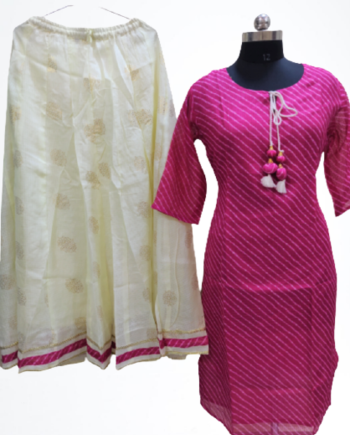 Pleasant Gold Print Skirt with Lehria-Mothra Raani Coloured Kurti