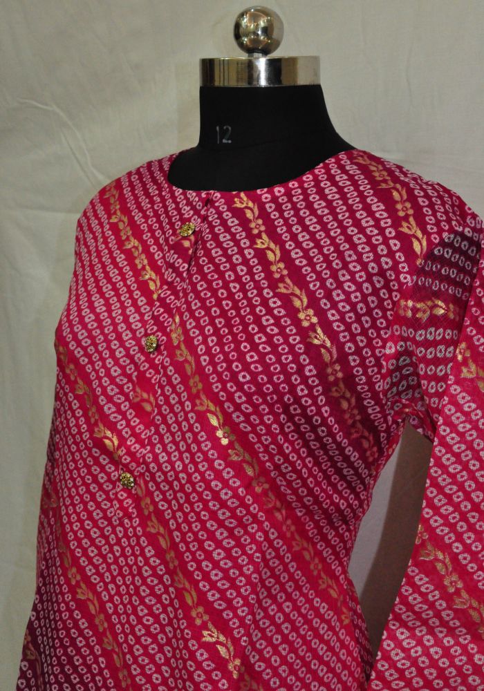 Perfect to pick for pujas, weekend get-together, kitty parties and events. Pair it up with leggings, cigarette pants to create a contrasting effect, along with heels & stylish accessories. This attractive kurti will surely fetch you compliments for your rich sense of style.