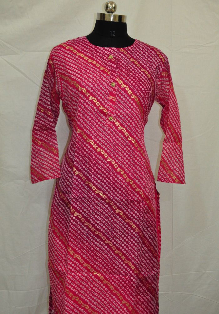 Incite your admirers to bask in your glory with this amazing pink colored kurti. This traditional wear kurti is fashioned on kota fabric & enriched with block print.