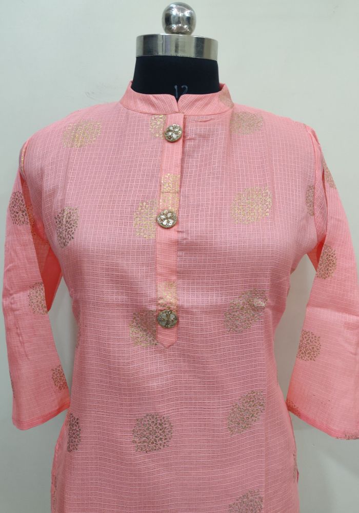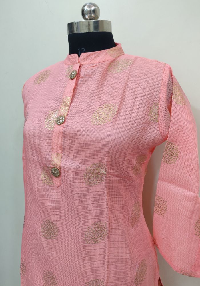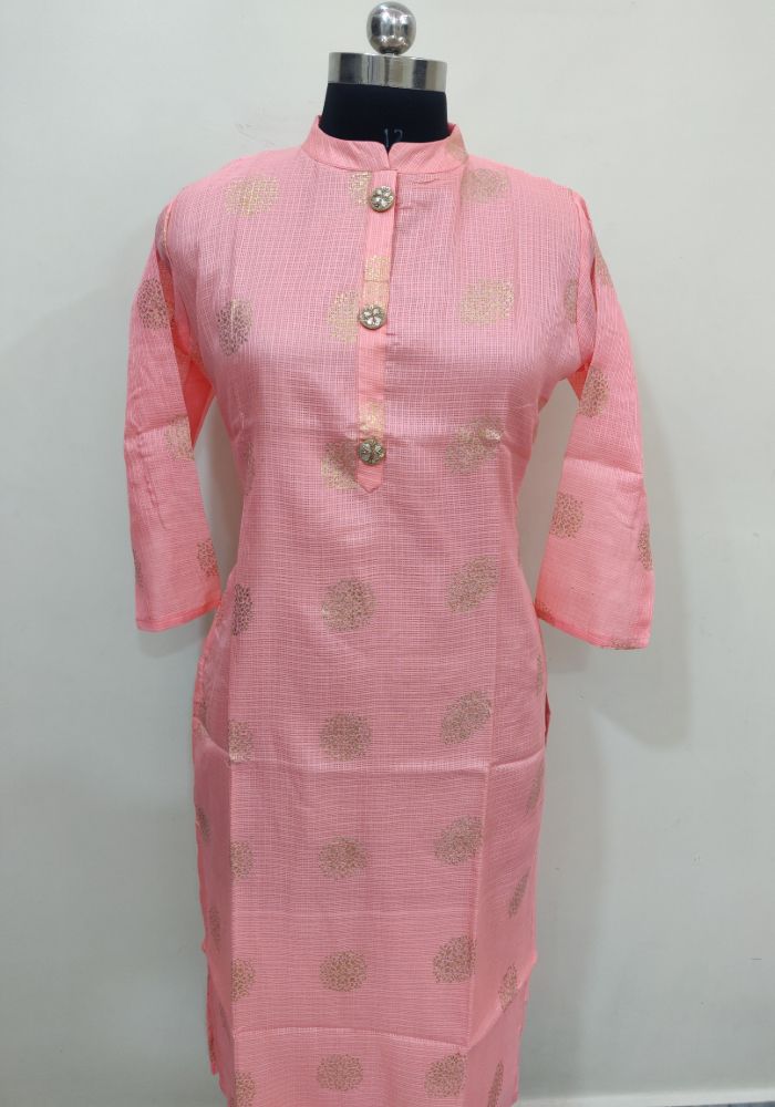 Ethnic Rouge Pink Coloured Gold Print Kota Kurti