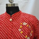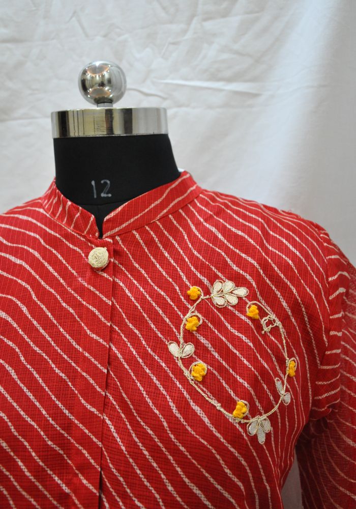 Give your weekend styling a trendy makeover wearing this red coloured party wear gotta work Kota kurti. This kurti fabric is lightweight and assures the wearer a perfect fit & comfort. This stitched kurti beautified with latest trend & fashion as shown.