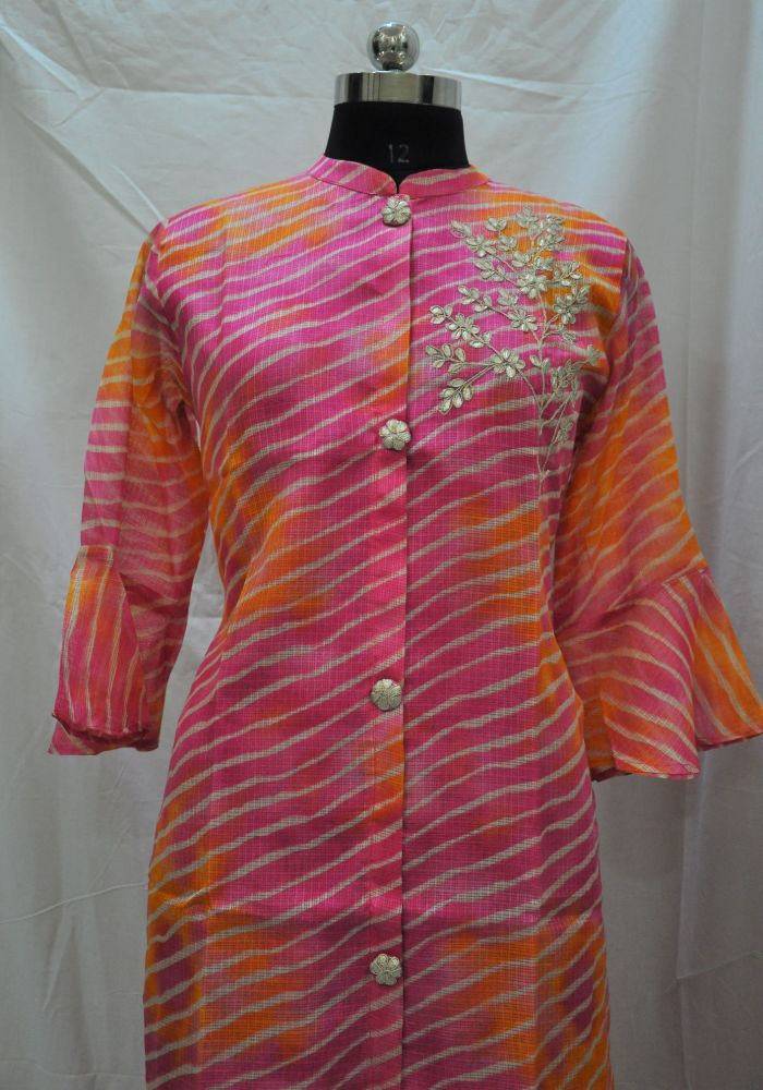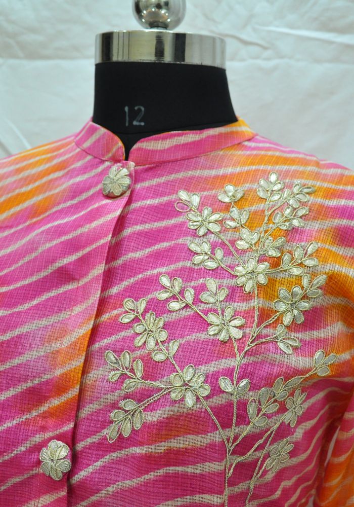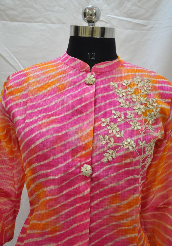 Give your weekend styling a trendy makeover wearing this pink and orange colored party wear gotta work Kota kurti. This kurti fabric is lightweight and assures the wearer a perfect fit & comfort. This stitched kurti beautified with latest trend & fashion as shown.