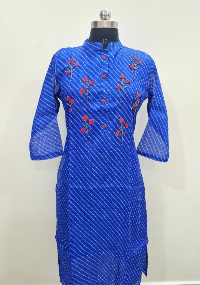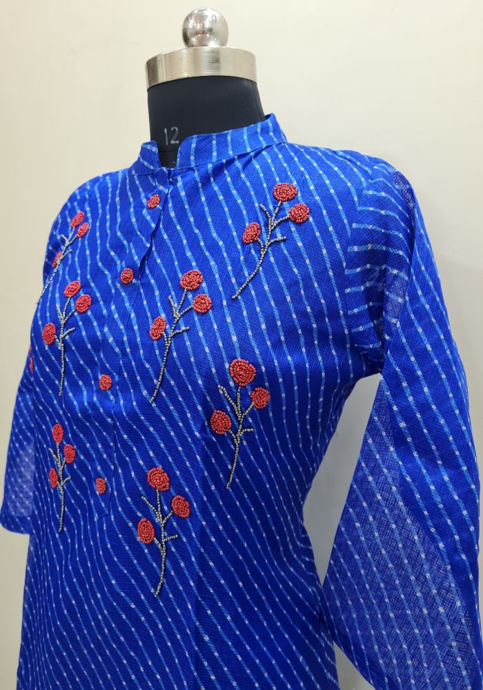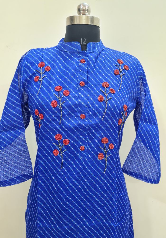 Navy Blue Coloured Kota Kurti with Beads work