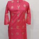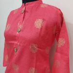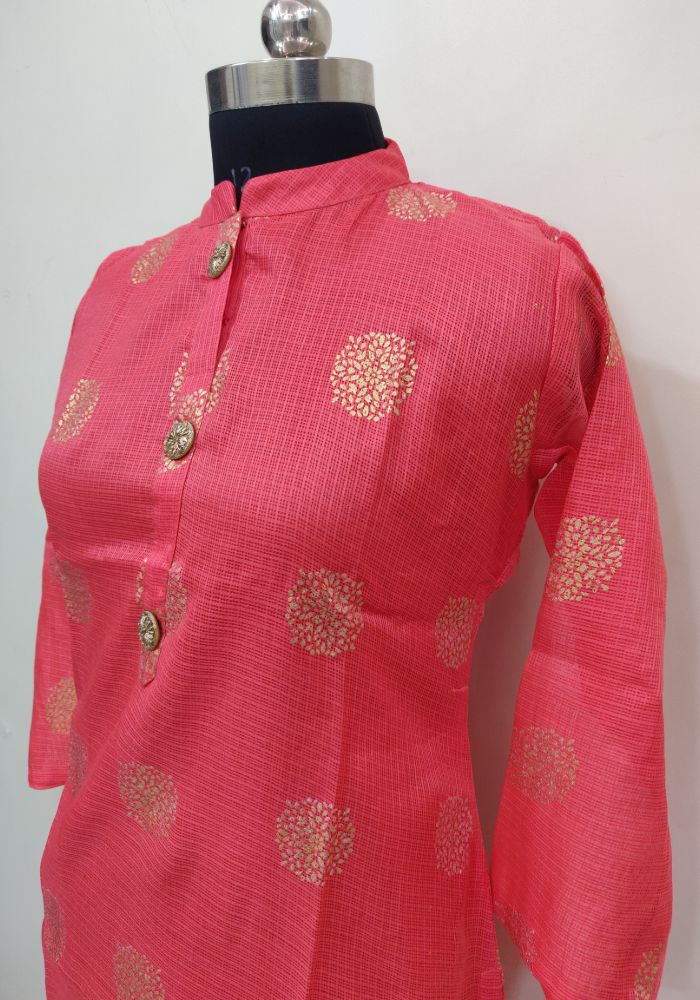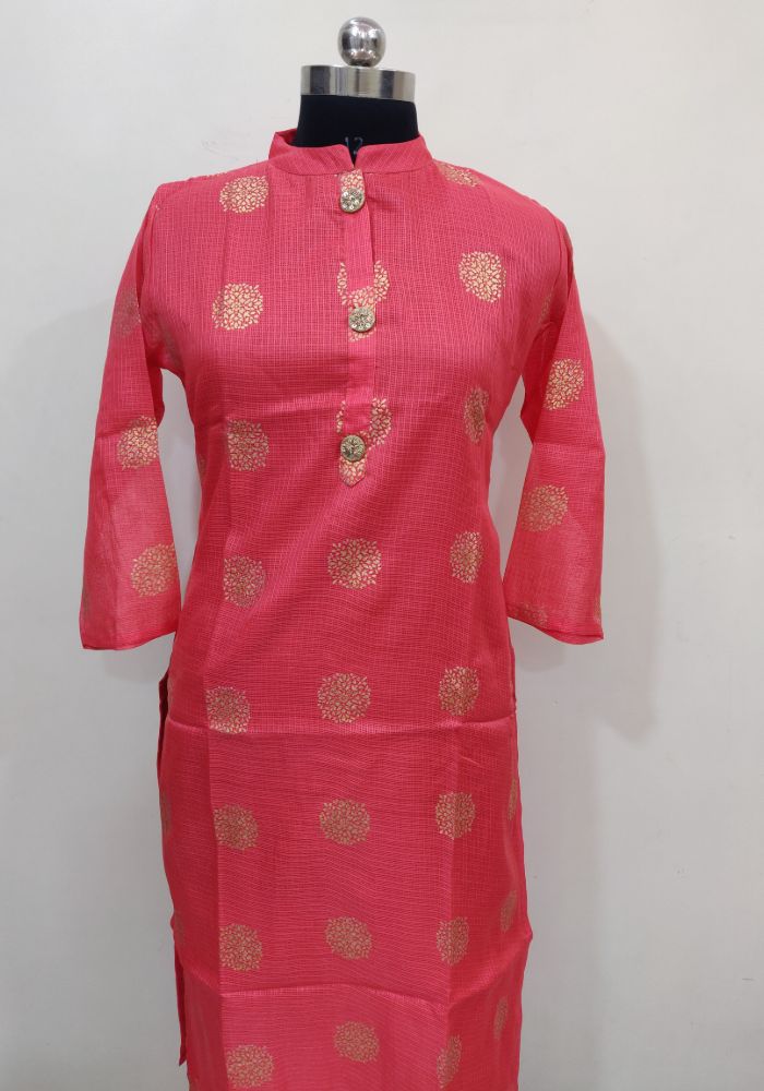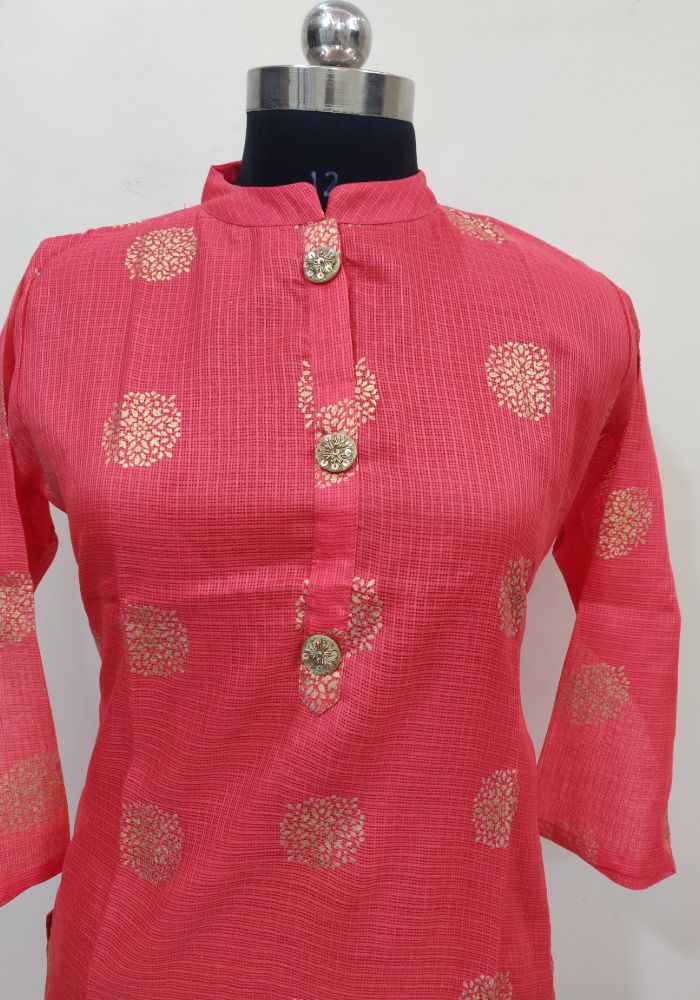 Unique Coral Pink Coloured Foil Print Kota Kurti