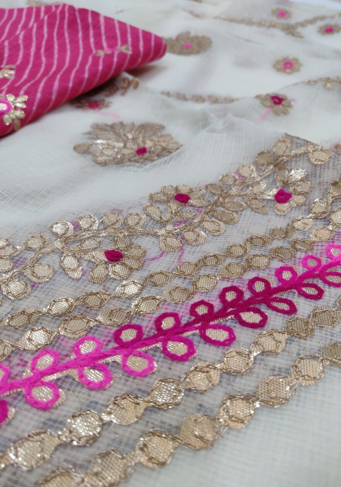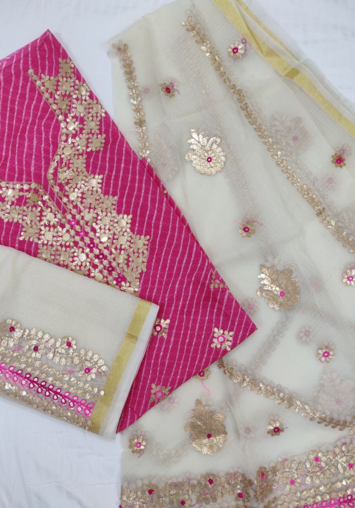 Available with unstitched lehria kurti fabric and kota gotta work dupatta with lace.