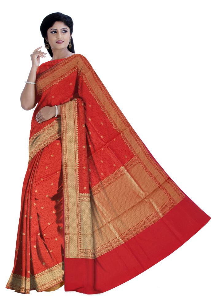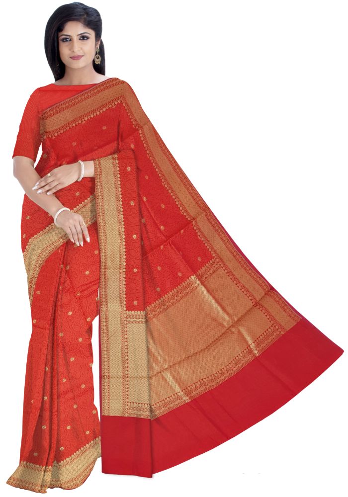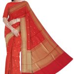 Be your exceptional fashion diva with this red coloured saree. The saree is made of chanderi fabric and beautified with lovely checks weaving work with rich pallu which not only looks good but it’s also comfortable to wear all day long. A traditional sari, made in Chanderi, Madhya Pradesh, India. The weaving culture of Chanderi emerged between 2nd and 7th centuries. One of the finest saree in India.