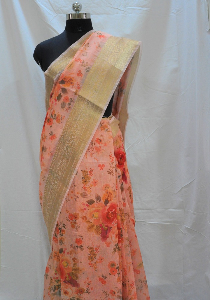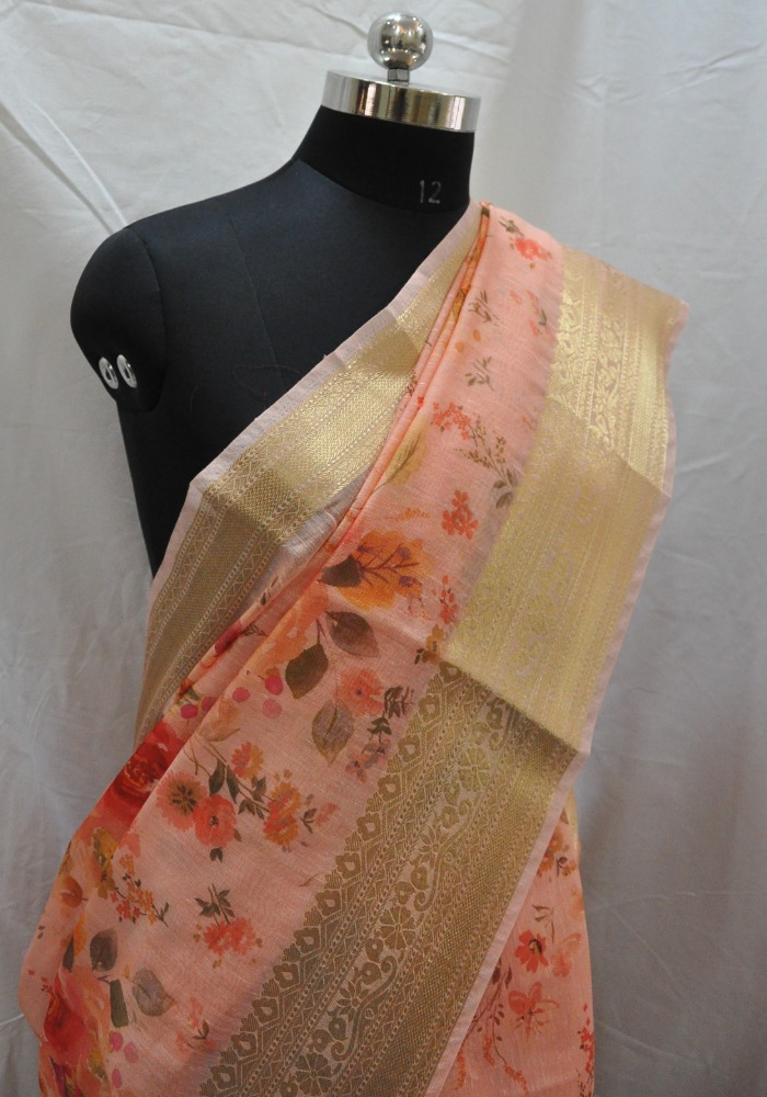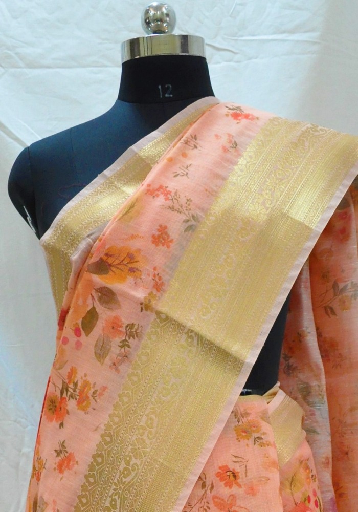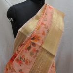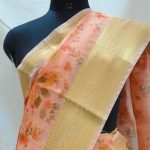 Be your exceptional fashion diva with this baby pink coloured saree. The saree is made of CHANDERI fabric and beautified with lovely floral work with rich pallu which not only looks good but it’s also comfortable to wear all day long. A traditional sari, made in Chanderi, Madhya Pradesh, India. The weaving culture of Chanderi emerged between 2nd and 7th centuries. One of the finest saree in India.