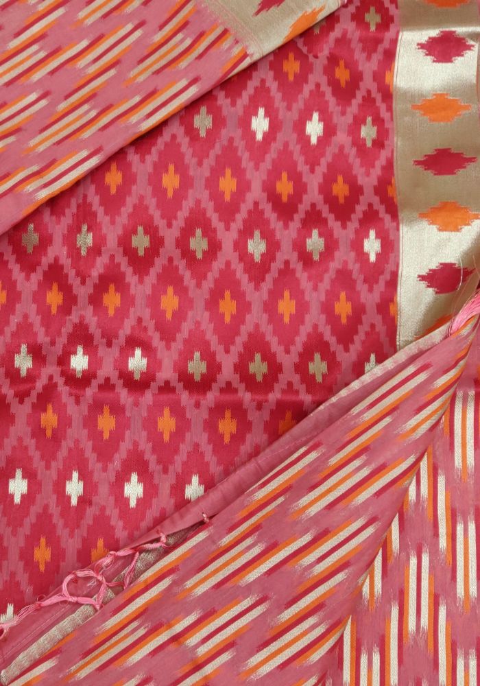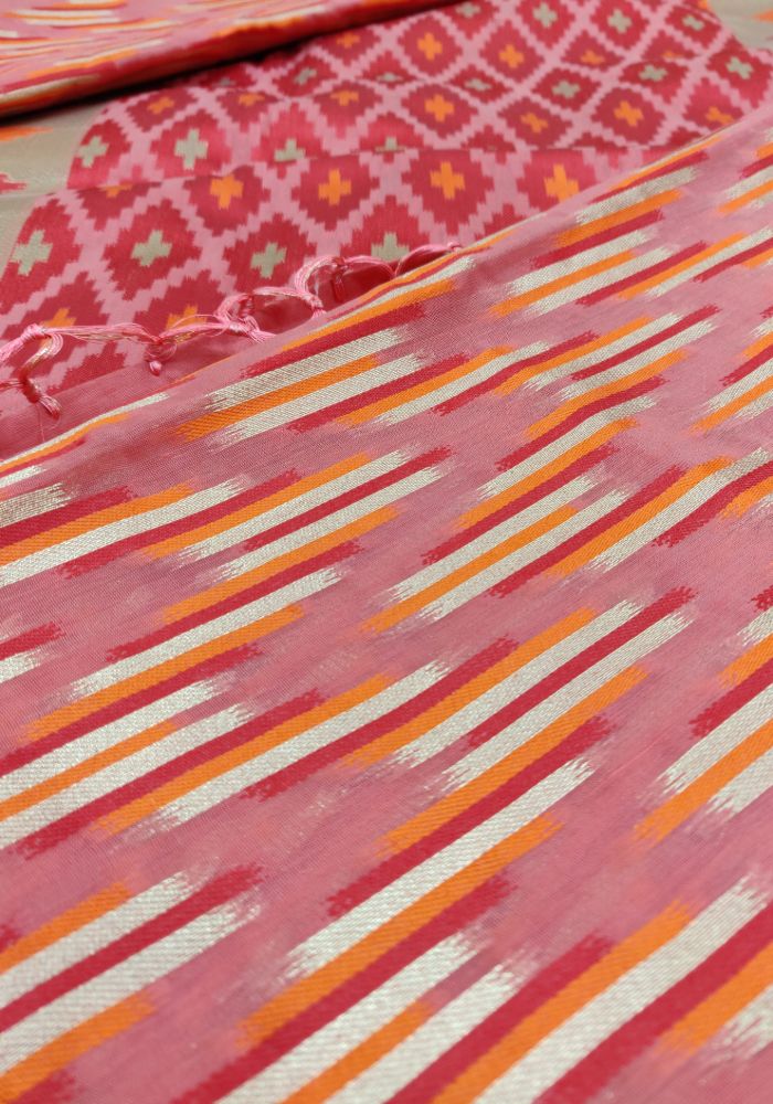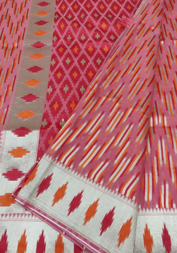 Arresting Peach-Red Coloured Party Wear Silk Cotton Weaving Saree