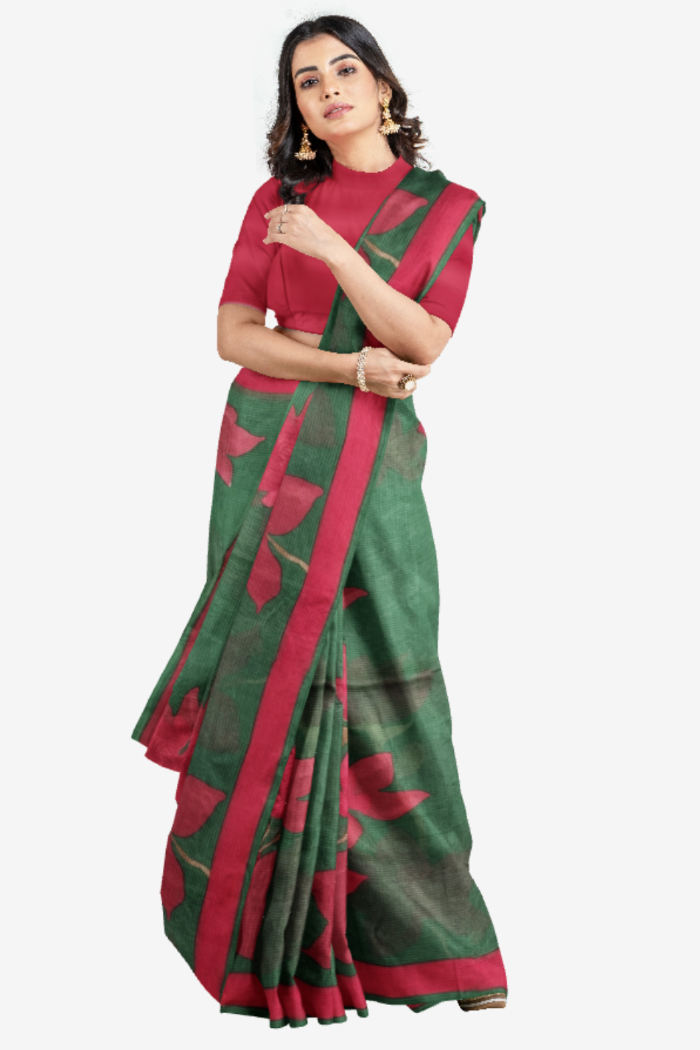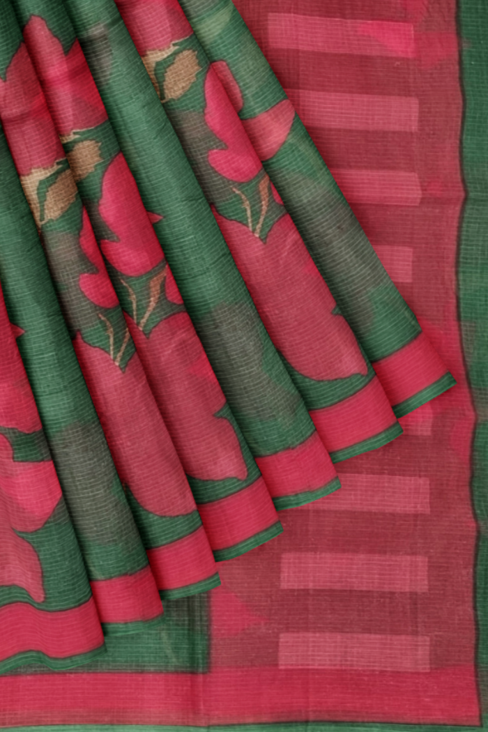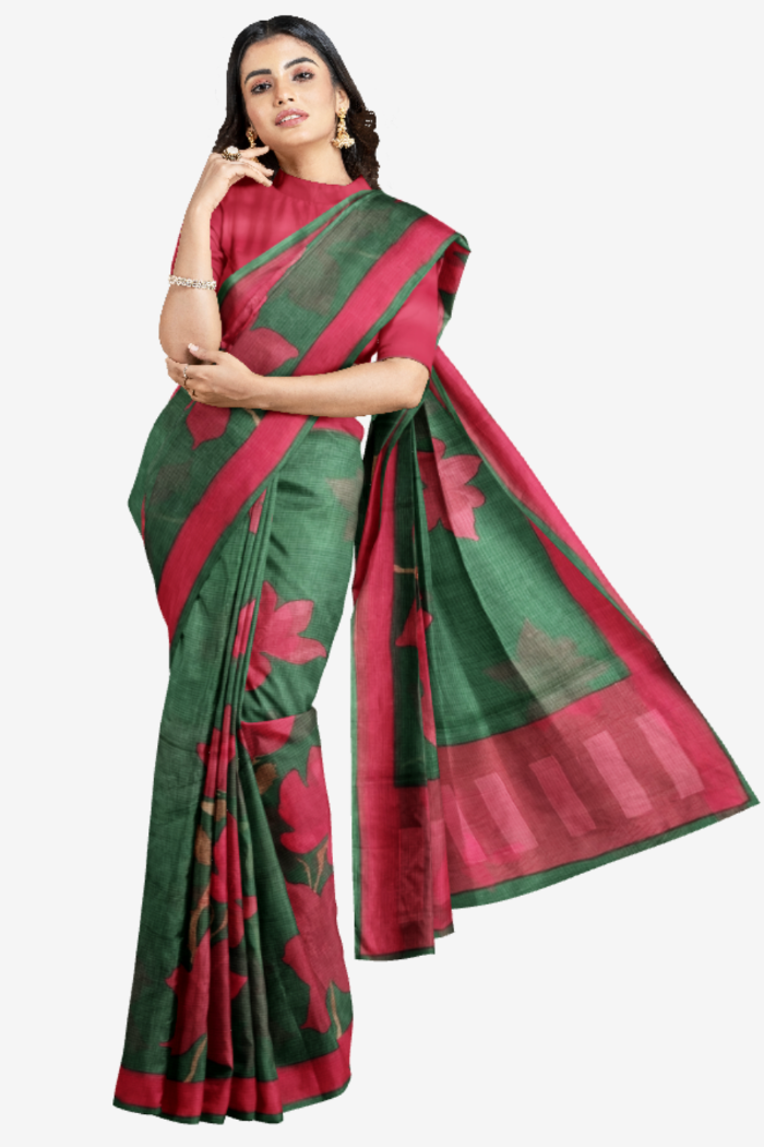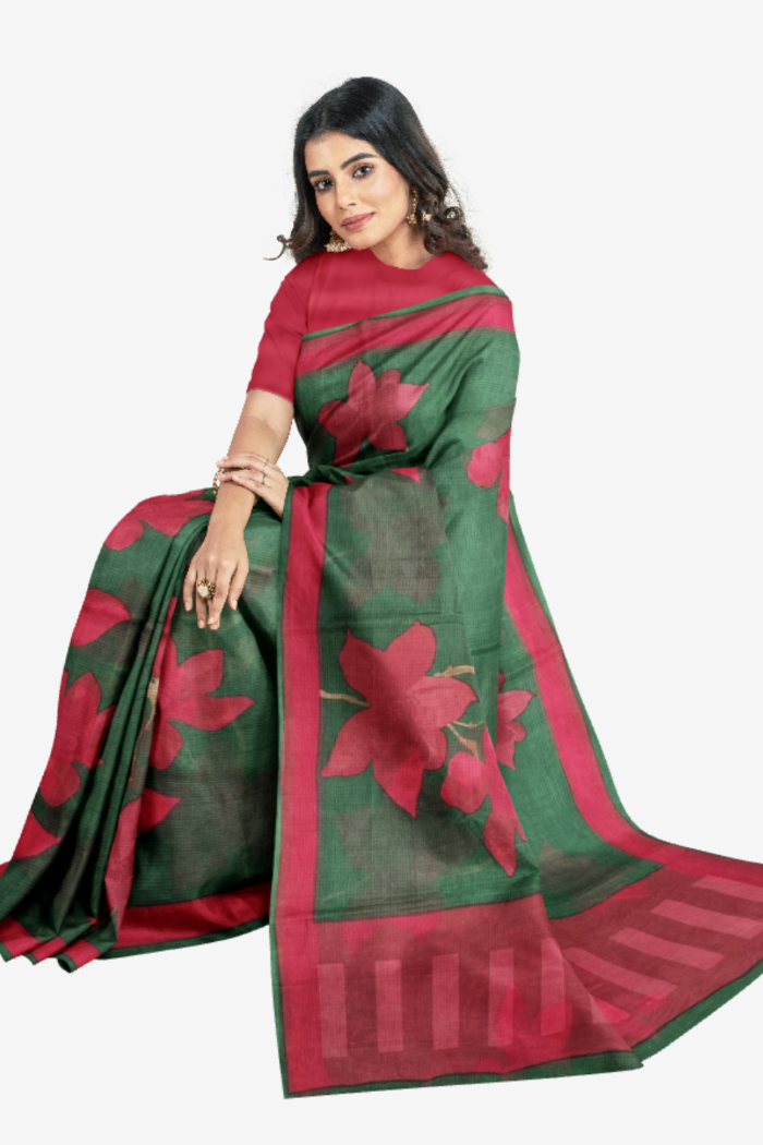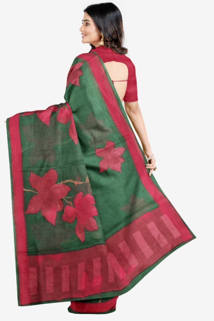 Color your life in the twinkling of an eye with this trendy Green-red colored KOTA PRINTED saree. The saree attire is enhanced with beautiful print work as shown. The chequered weave of a Kota sari is it’s speciality. They are very fine weaves and weigh very less. This saree is comfortable to wear and care.
