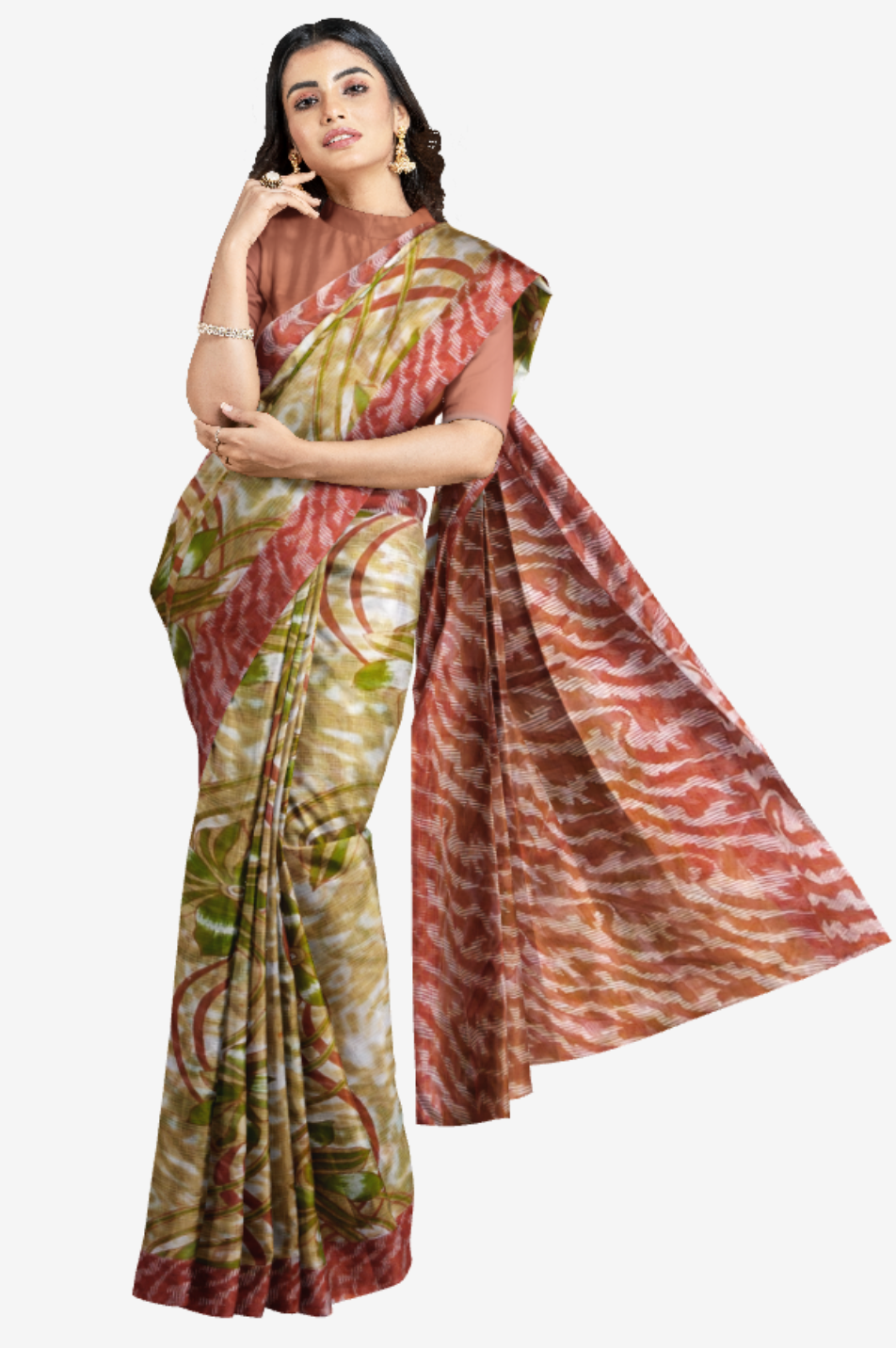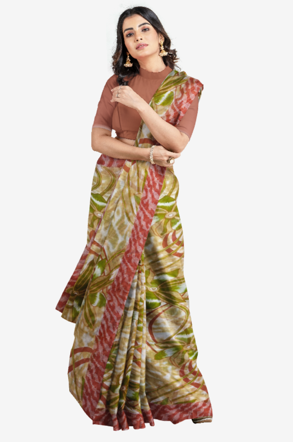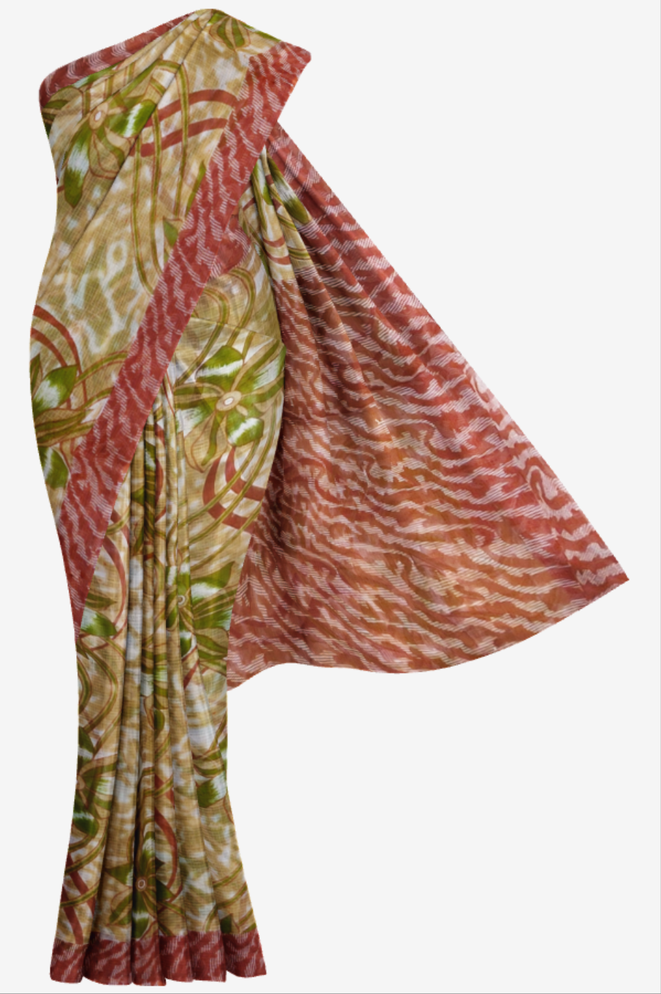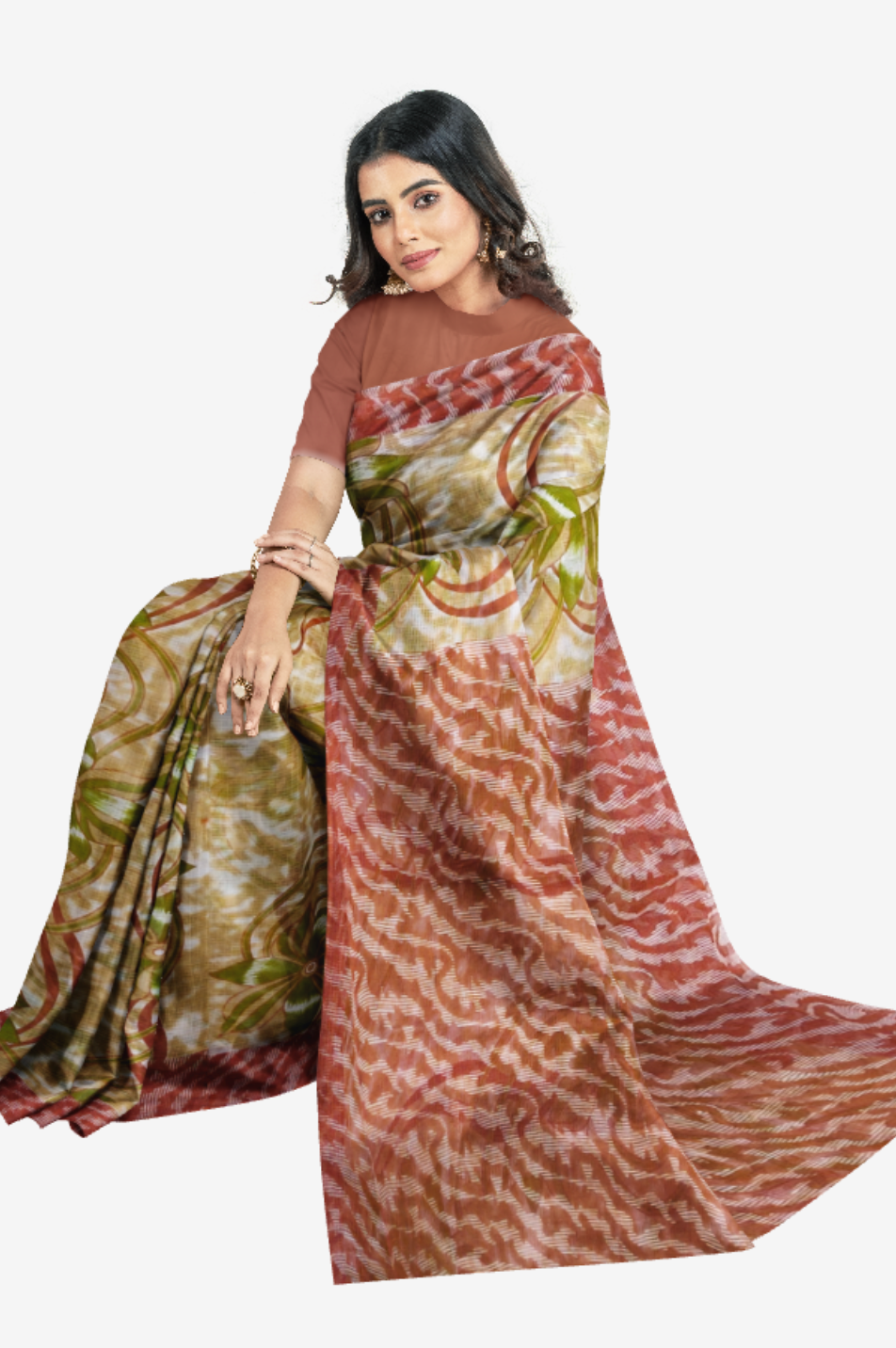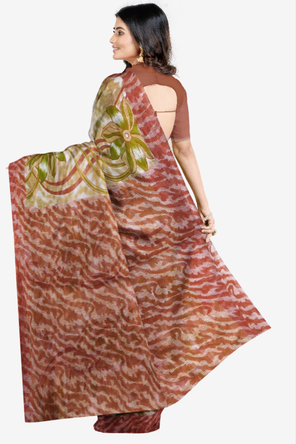 Color your life in the twinkling of an eye with this trendy Green-red colored KOTA PRINTED saree. The saree attire is enhanced with beautiful print work as shown. The chequered weave of a Kota sari is it’s speciality. They are very fine weaves and weigh very less. This saree is comfortable to wear and care.