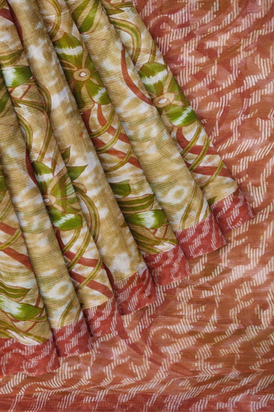 Mehandi Green coloured Casual Printed Pure Kota Saree