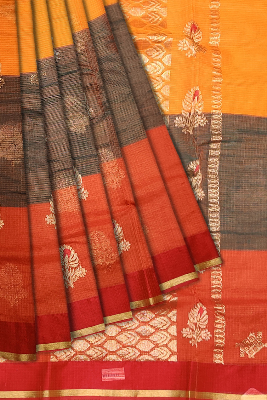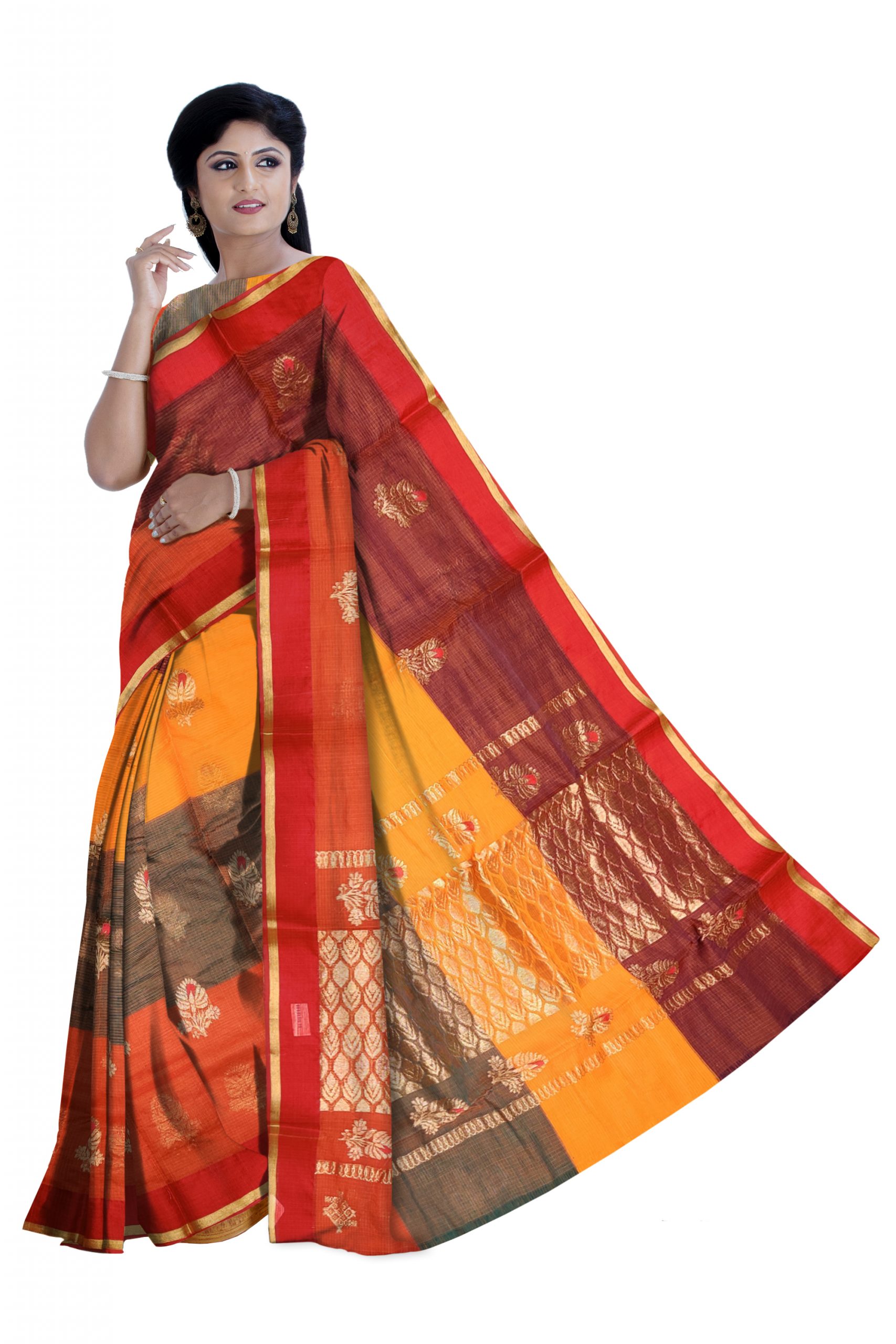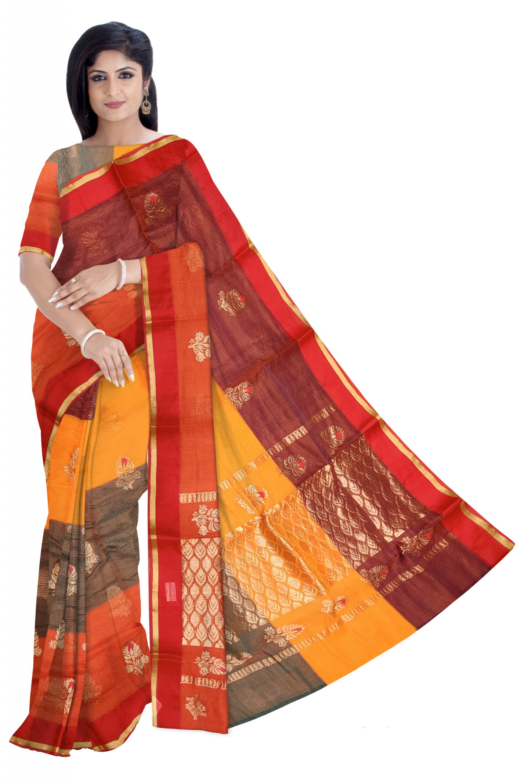 Elegance and honourable come together in this multi-colour colored saree. This saree is made of Pure Kota fabric which is highlighted with beautiful real silver and gold woven designs which makes this saree more elegant.