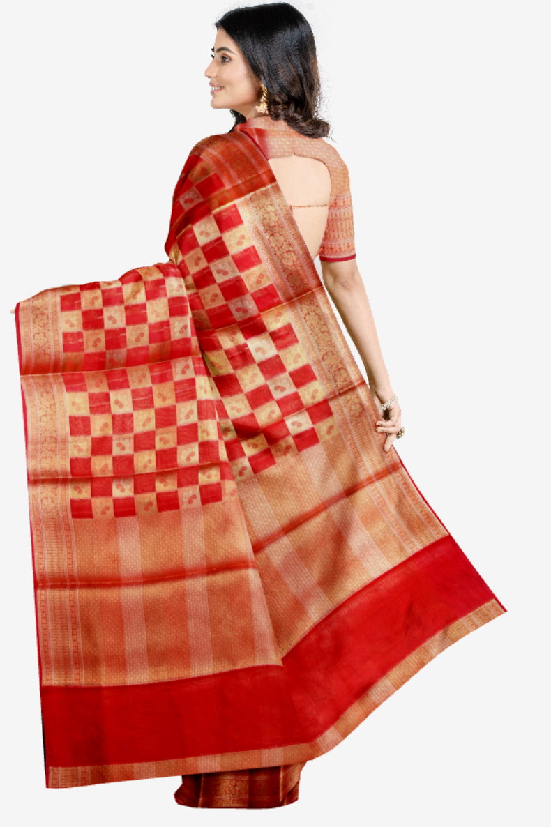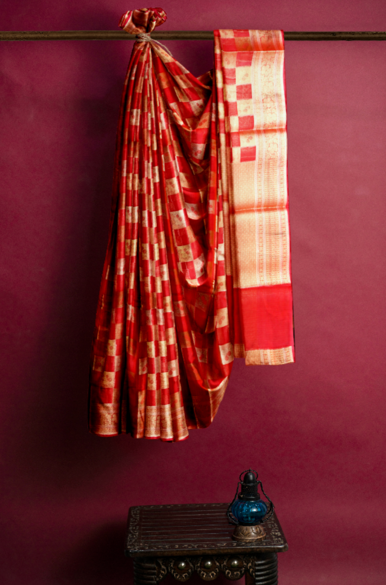 Kota Chequered Saree in Red Colour