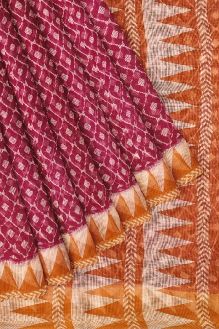 Blissful Pink  Coloured Kota Moonga Printed Saree with Maheen Print