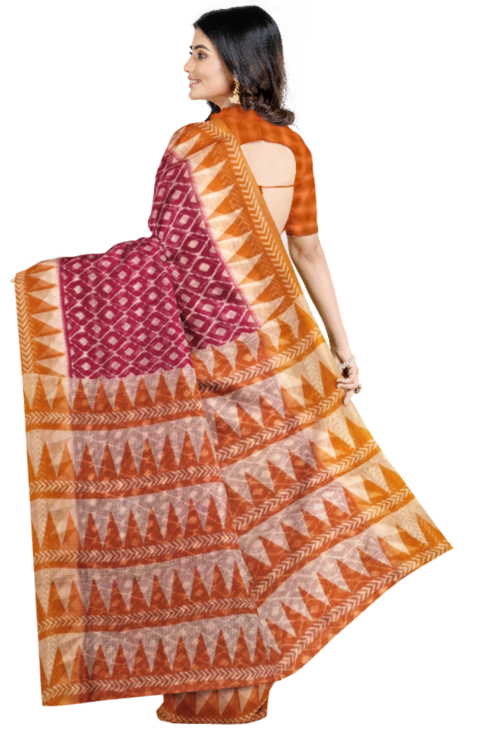 Color your life in the twinkling of an eye with this trendy Red colored MOONGA PRINTED saree. The saree attire is enhanced with beautiful print work as shown. The chequered weave of a Kota sari is it’s speciality. They are very fine weaves and weigh very less. This saree is comfortable to wear and care.