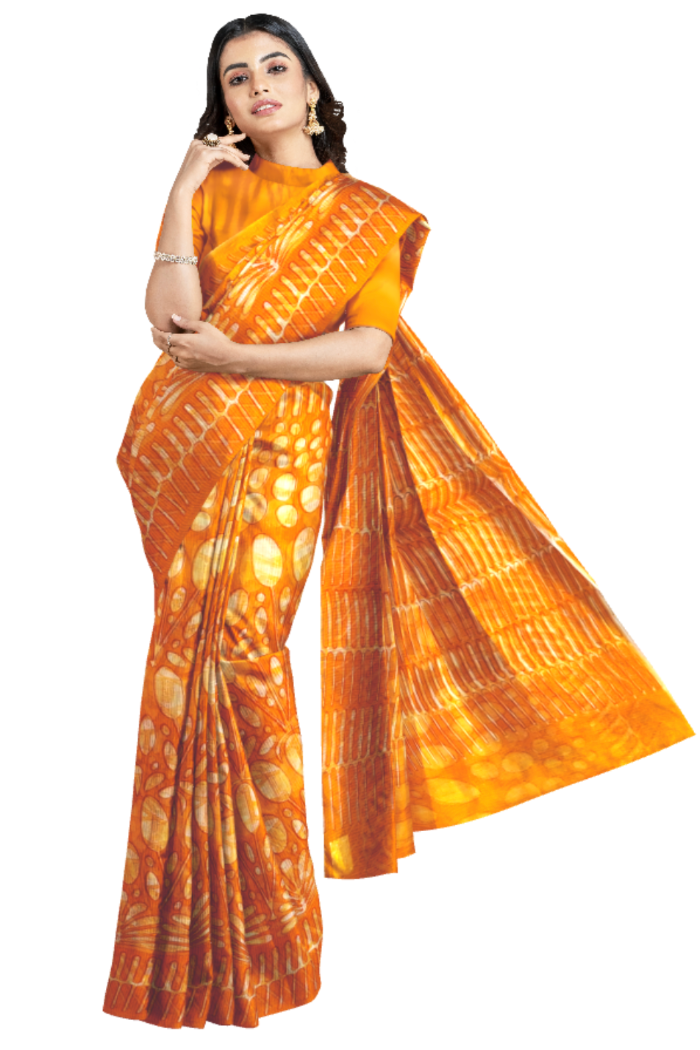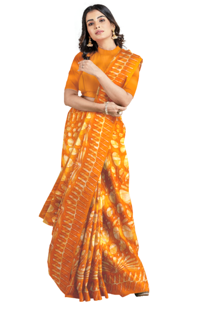 Bright Sun Coloured Kota Moonga Printed Saree
