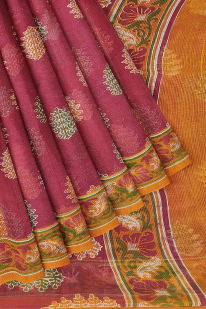 Energetic Maroon Coloured Kota Moonga Printed Saree