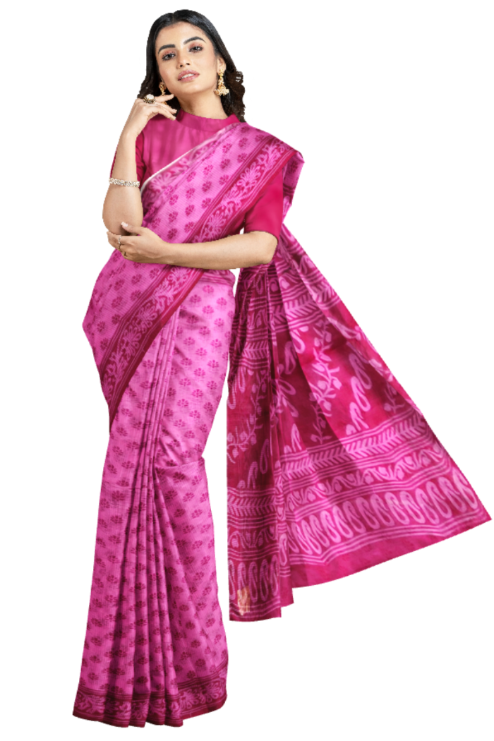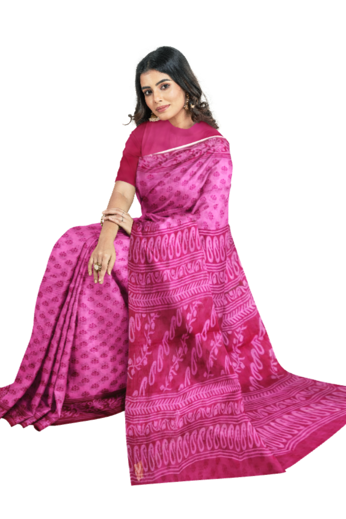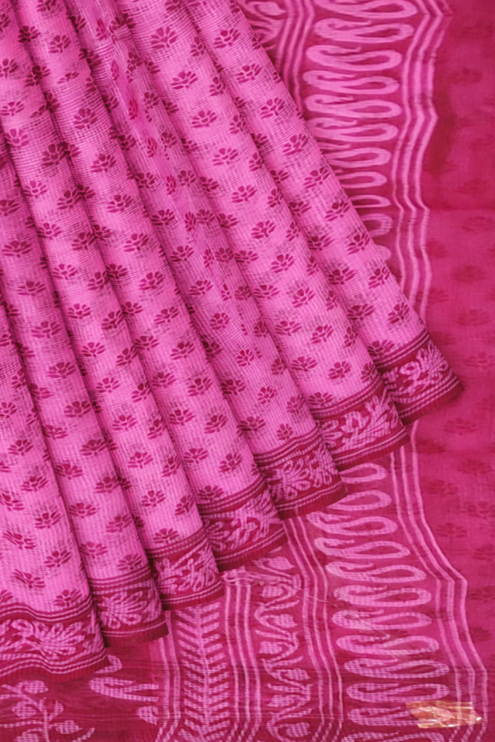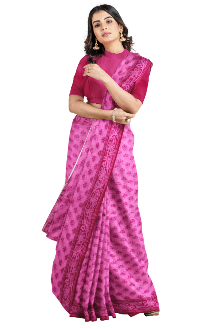 Radiant Pink Coloured Kota Moonga Printed Saree