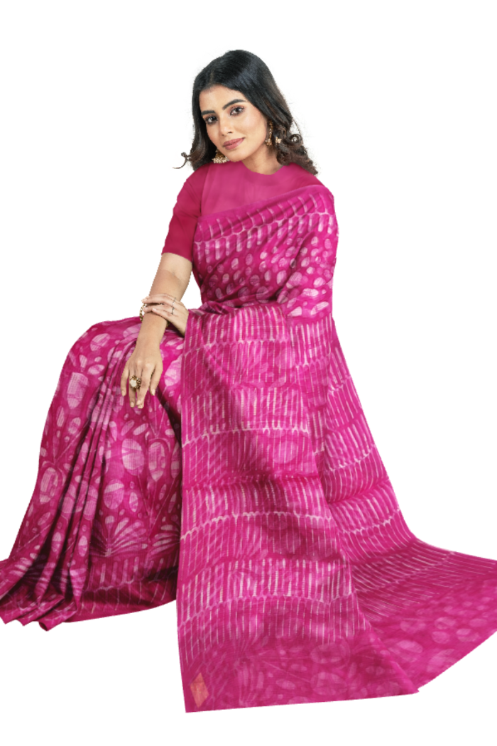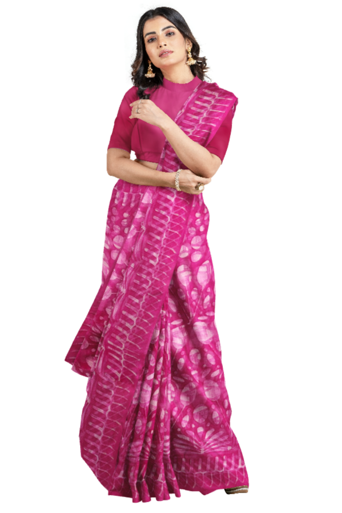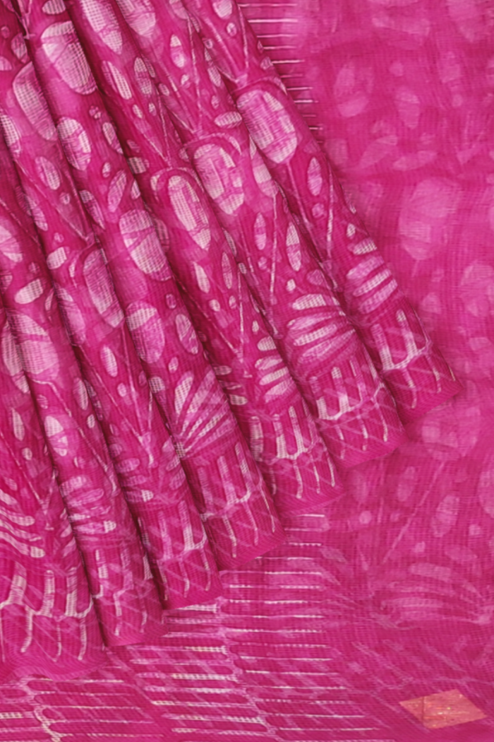 Stunning Magenta Coloured Kota Moonga Printed Saree with floral design