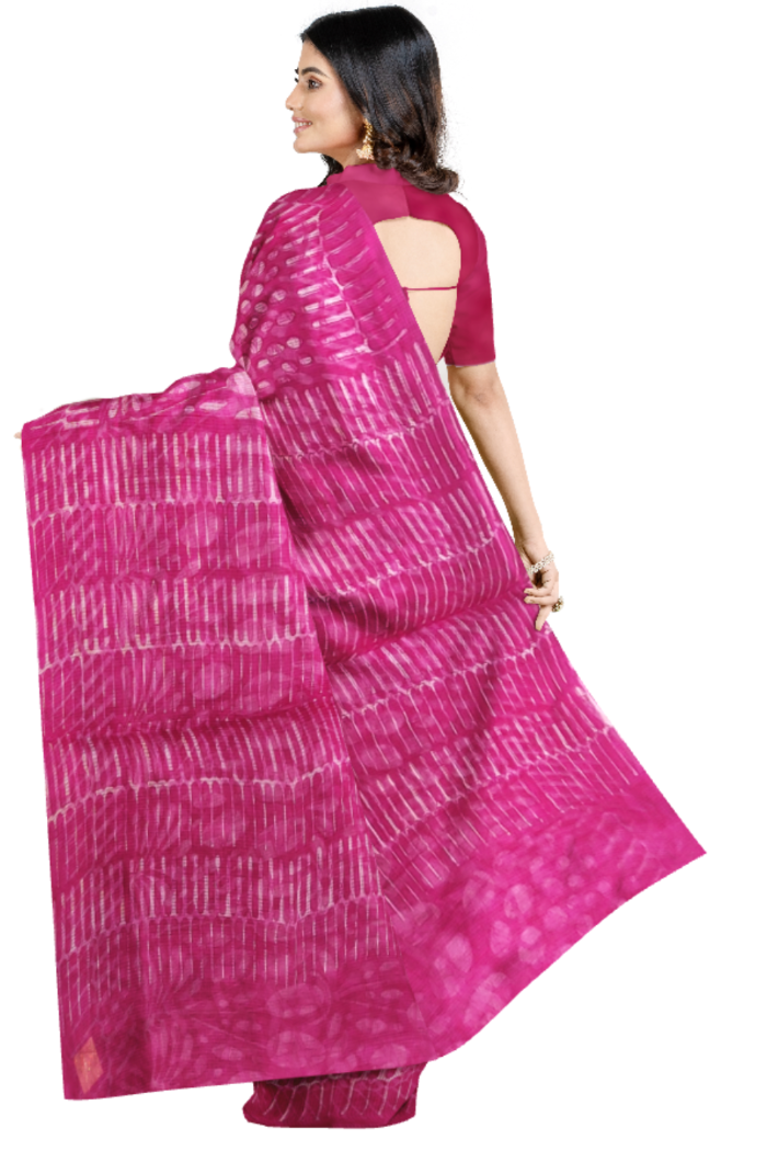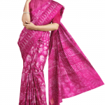 We unfurl our intricacy and exclusivity of our creations, highlighted in this Magenta coloured saree. This saree is made from kota doria fabric. It is highlighted with beautiful flower printed work as shown. The chequered weave of a Kota sari is it’s speciality. They are very fine weaves and weigh very less. This saree is comfortable to wear and care.