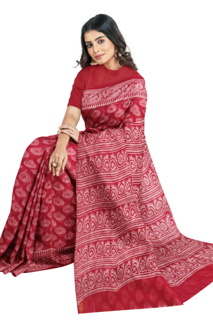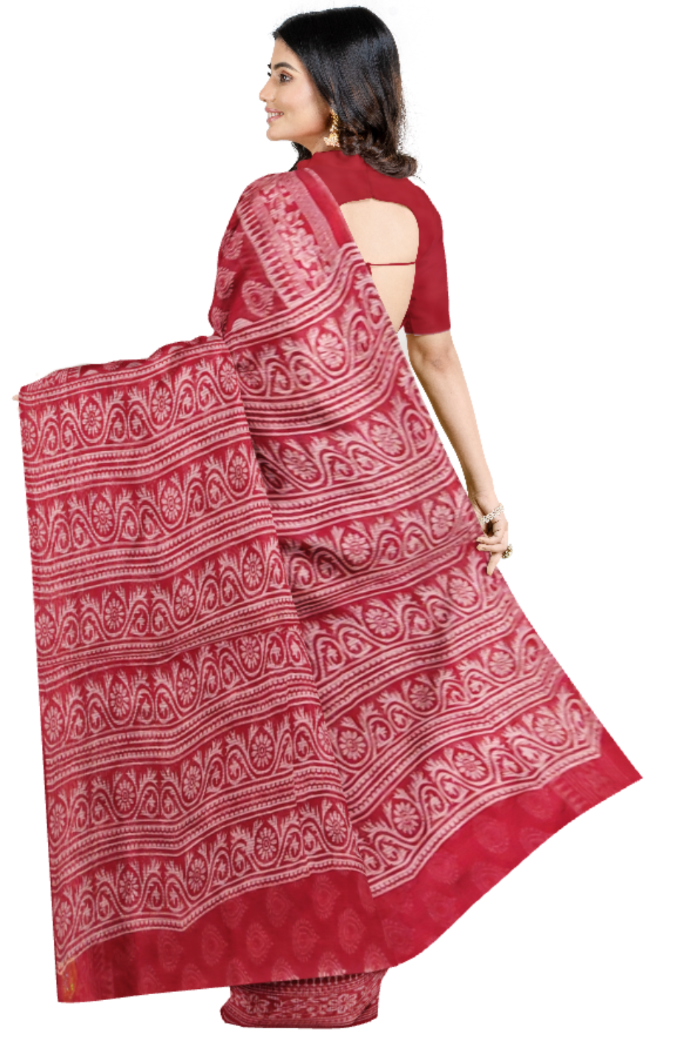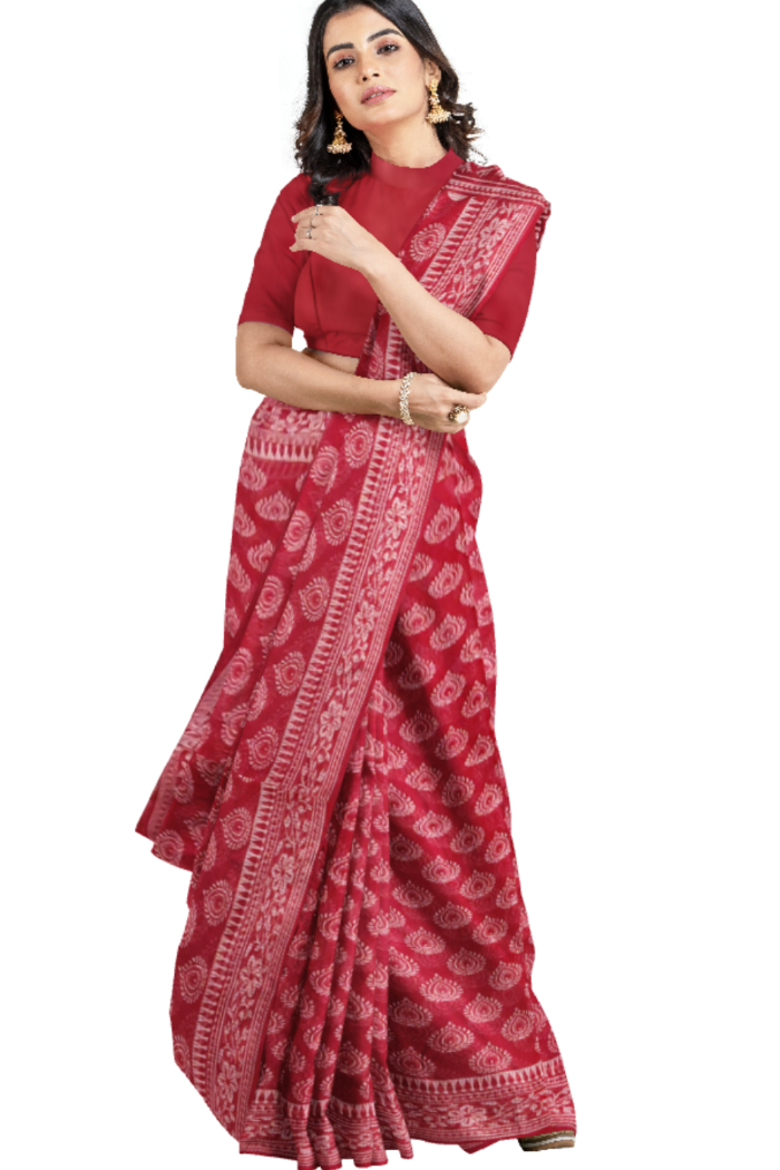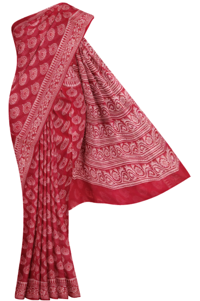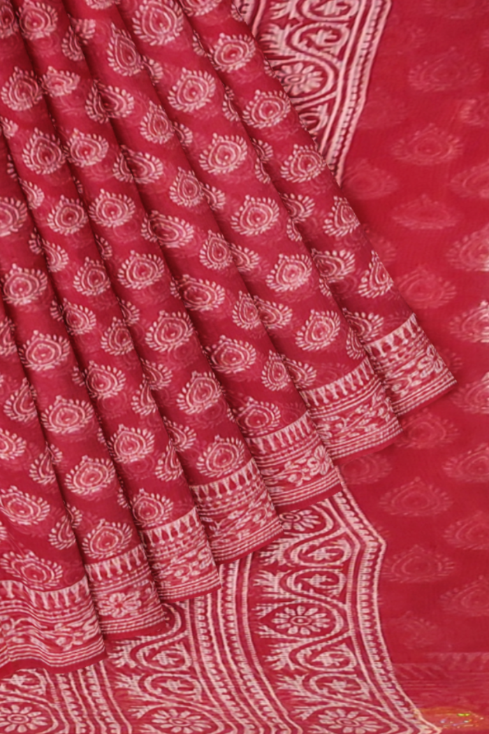 Unique Red Coloured Moonga Printed Saree