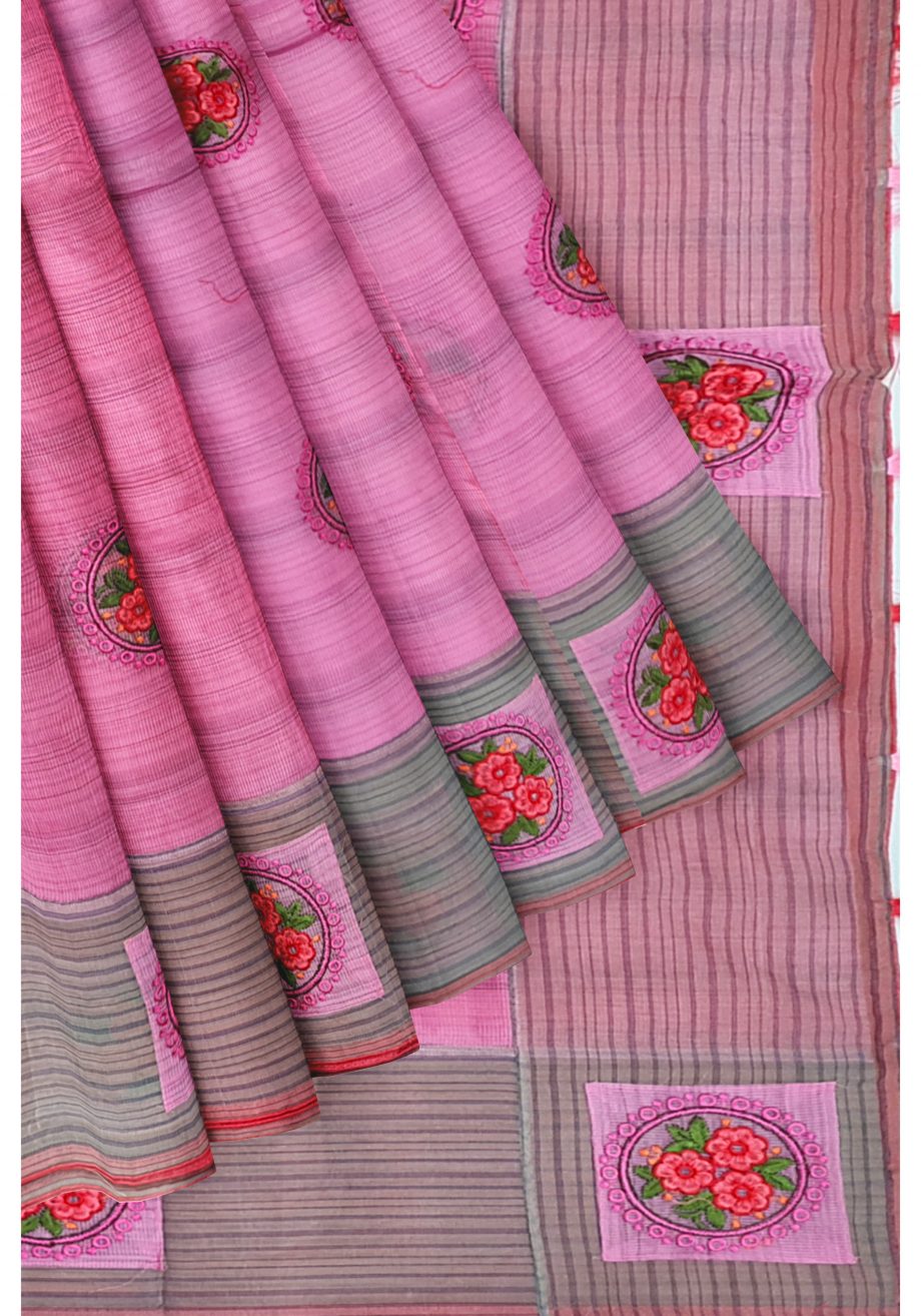 Gorgeous Pink Coloured Supernet Work Saree with Tassels