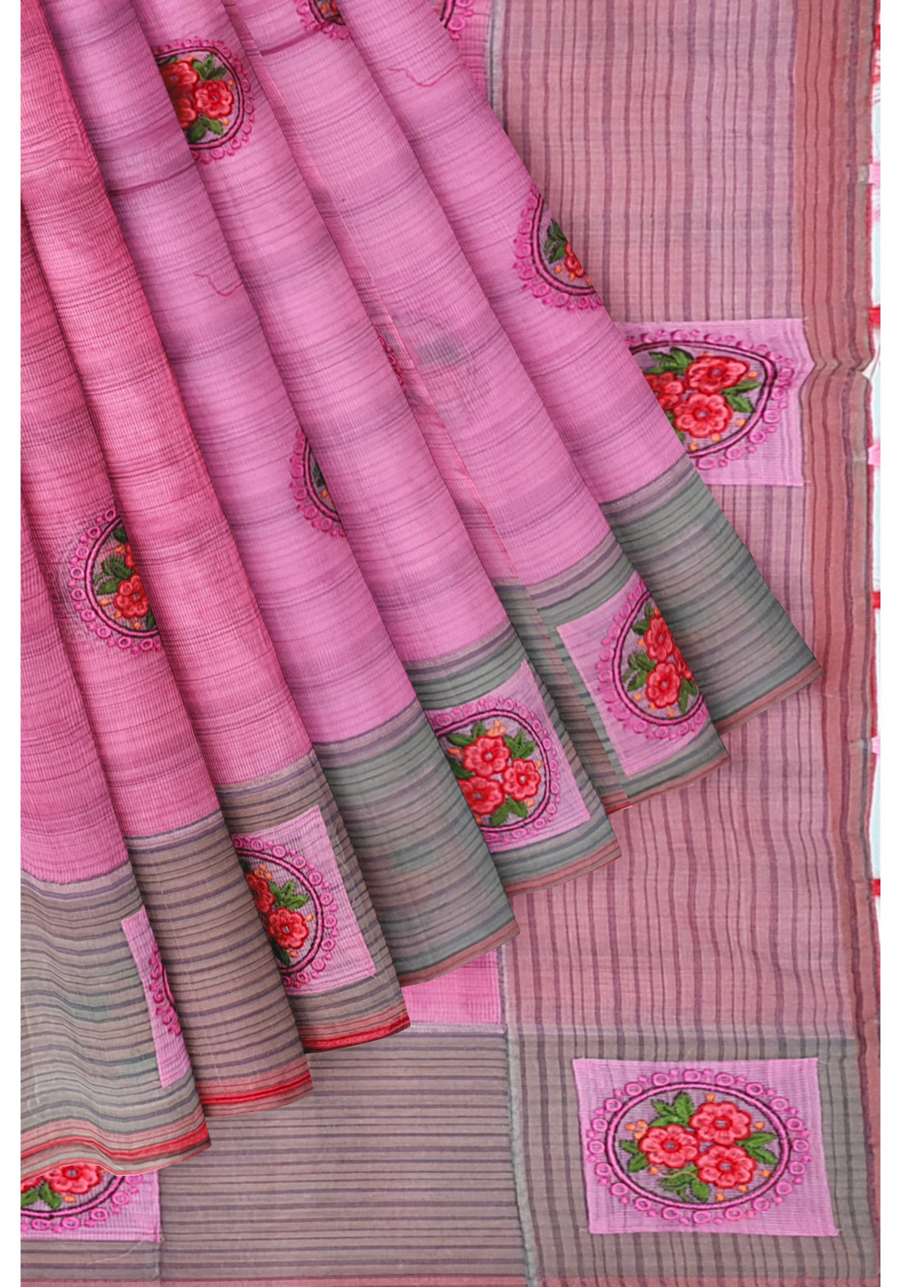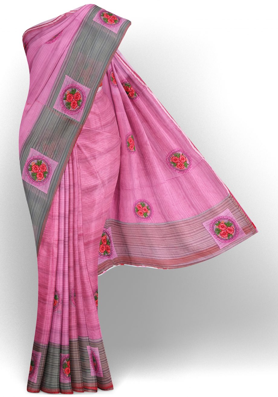 Color your life in the twinkling of an eye with this trendy pink colored Supernet work saree. The saree attire is enhanced with beautiful embroidery work as shown.