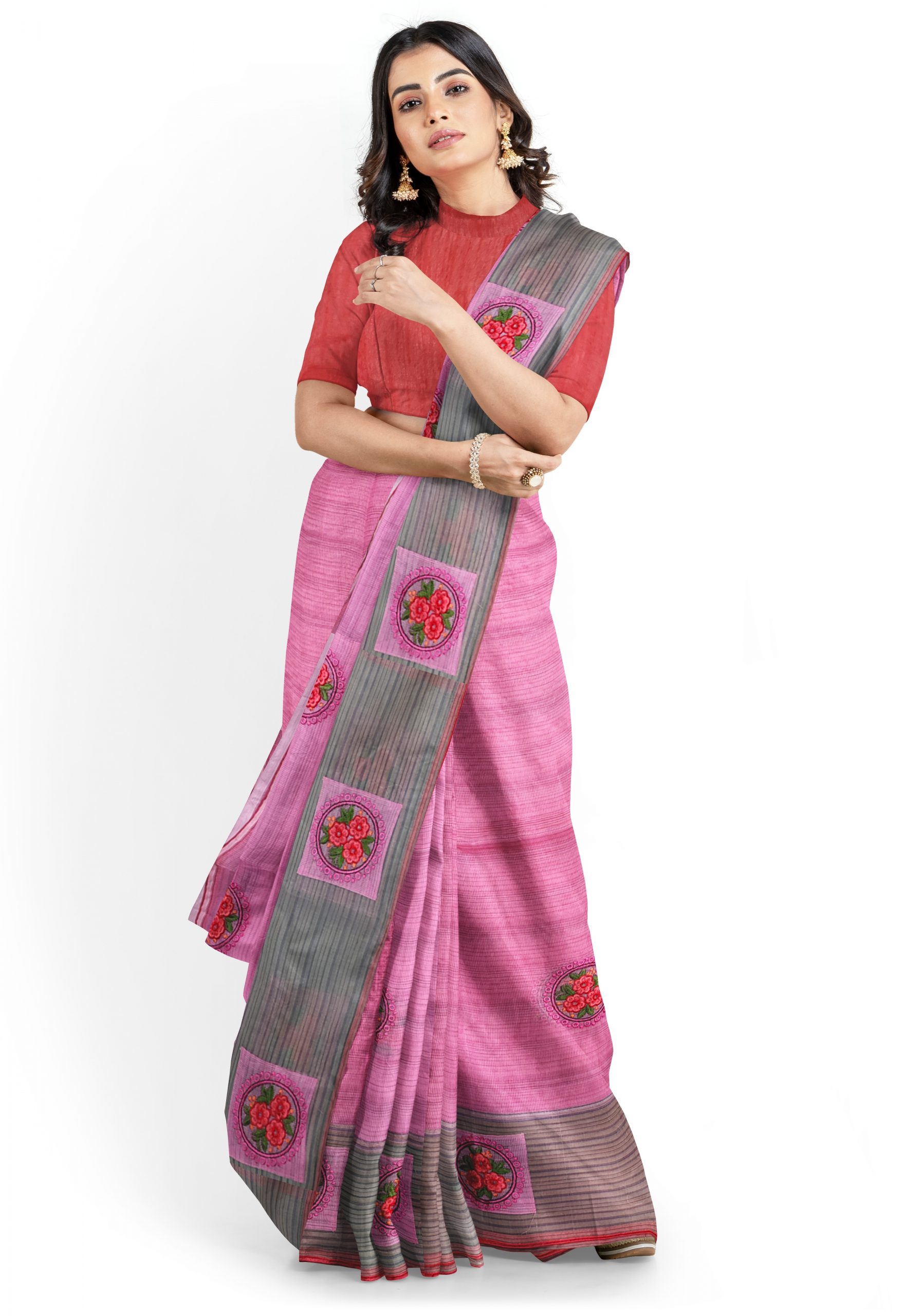 Saree comes along with unstitched matching blouse piece.